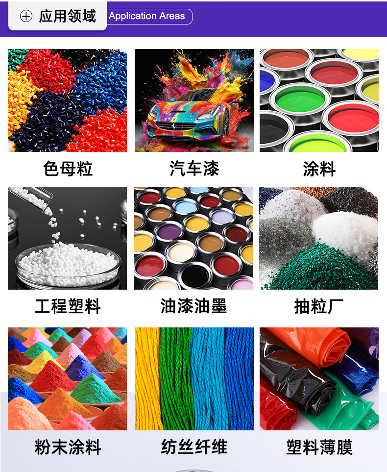 科萊恩Graphtol系列顏料主要應用于工程塑料、塑料色母粒、塑膠染色、PMMA著色等行業中,具有顏色鮮艷、著色力高、耐侯性好、加工溫度高等優點、科萊恩顏料在軟質塑料中具有著色力高,耐曬牢度優(7-8級),熱穩定性高(200-300度),耐遷移性好等優點。